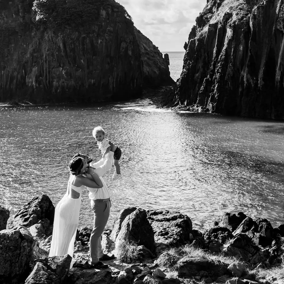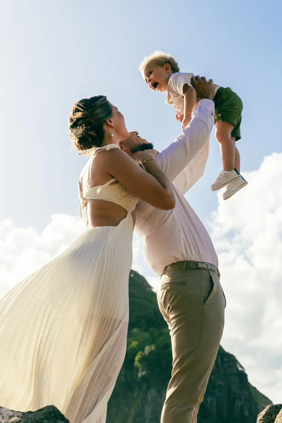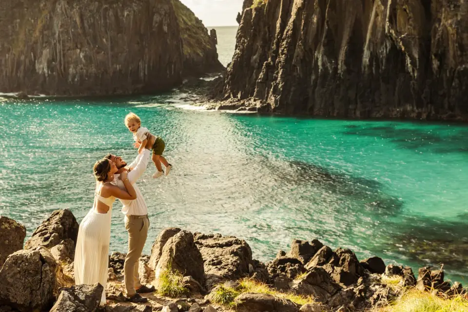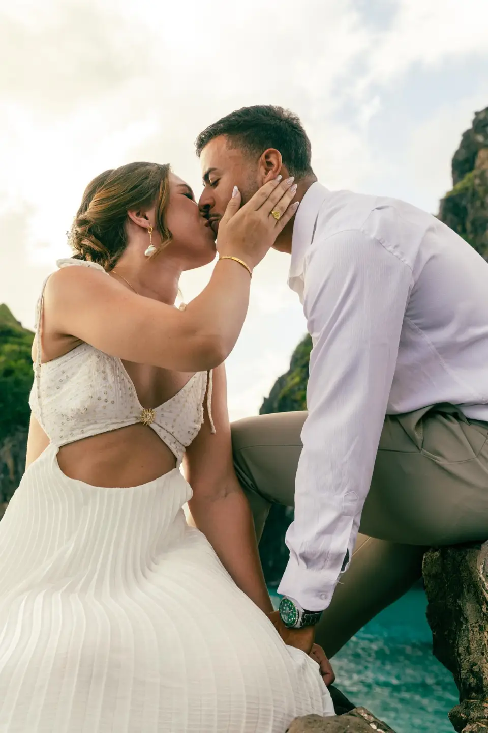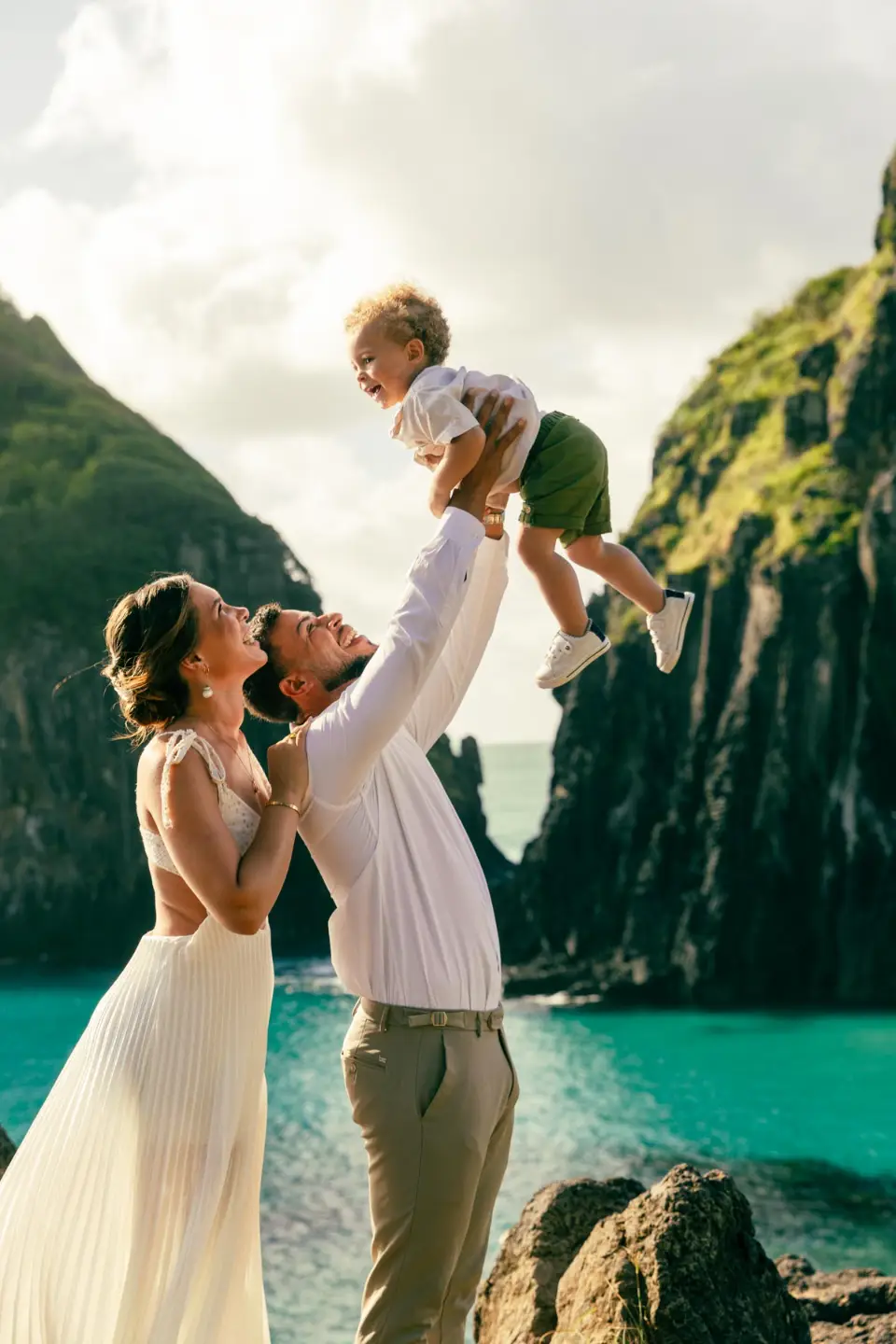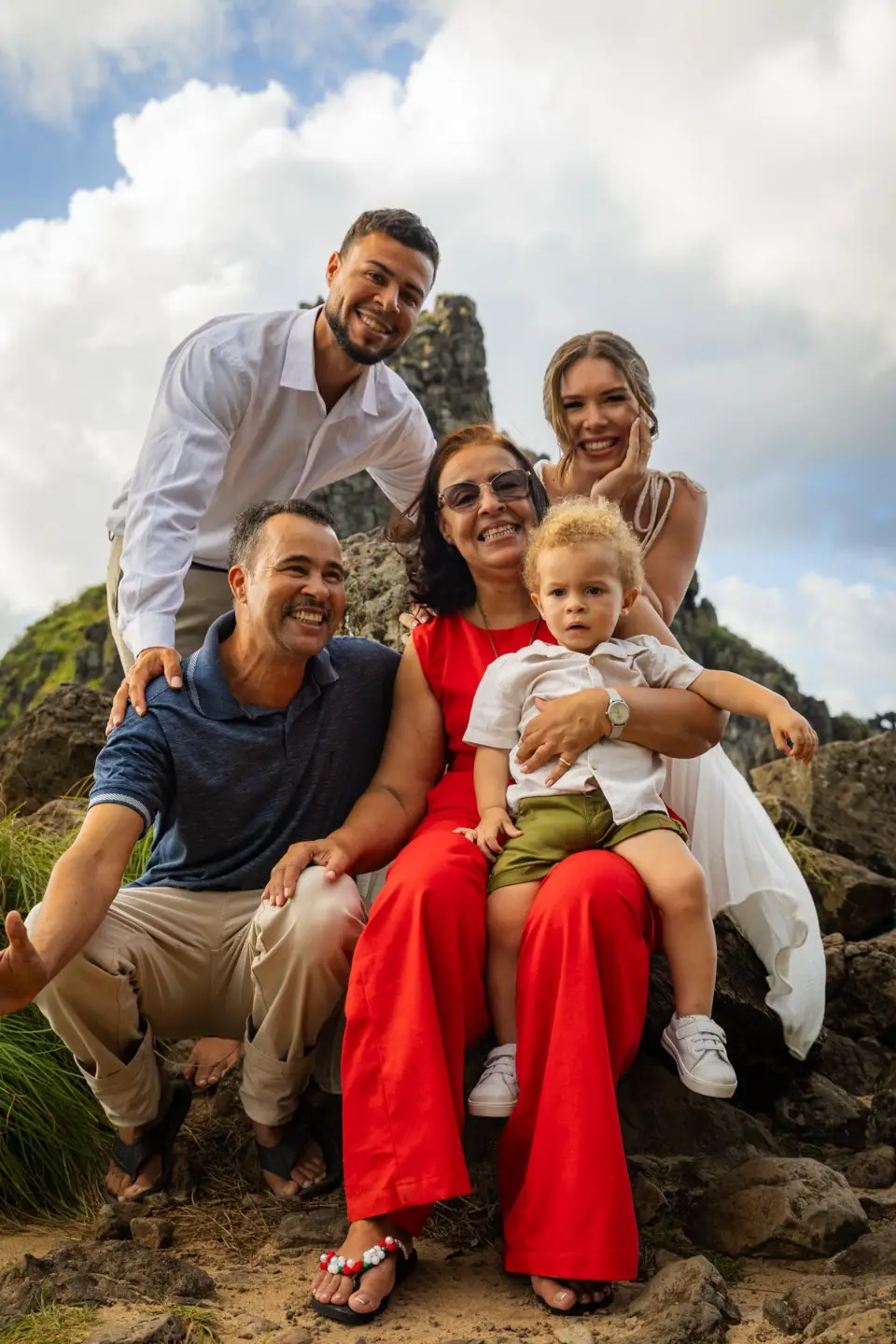 Logo após o “sim”, seguimos para o que chamamos de “escritório”: as paisagens deslumbrantes da ilha. Começamos pelo Mirante dos Dois Irmãos, que nos presenteou com aquela vista icônica que nunca cansa de surpreender. Ali, entre o azul do mar e a imensidão das rochas, a Adriele e o Silvio puderam relaxar e celebrar a nova fase.