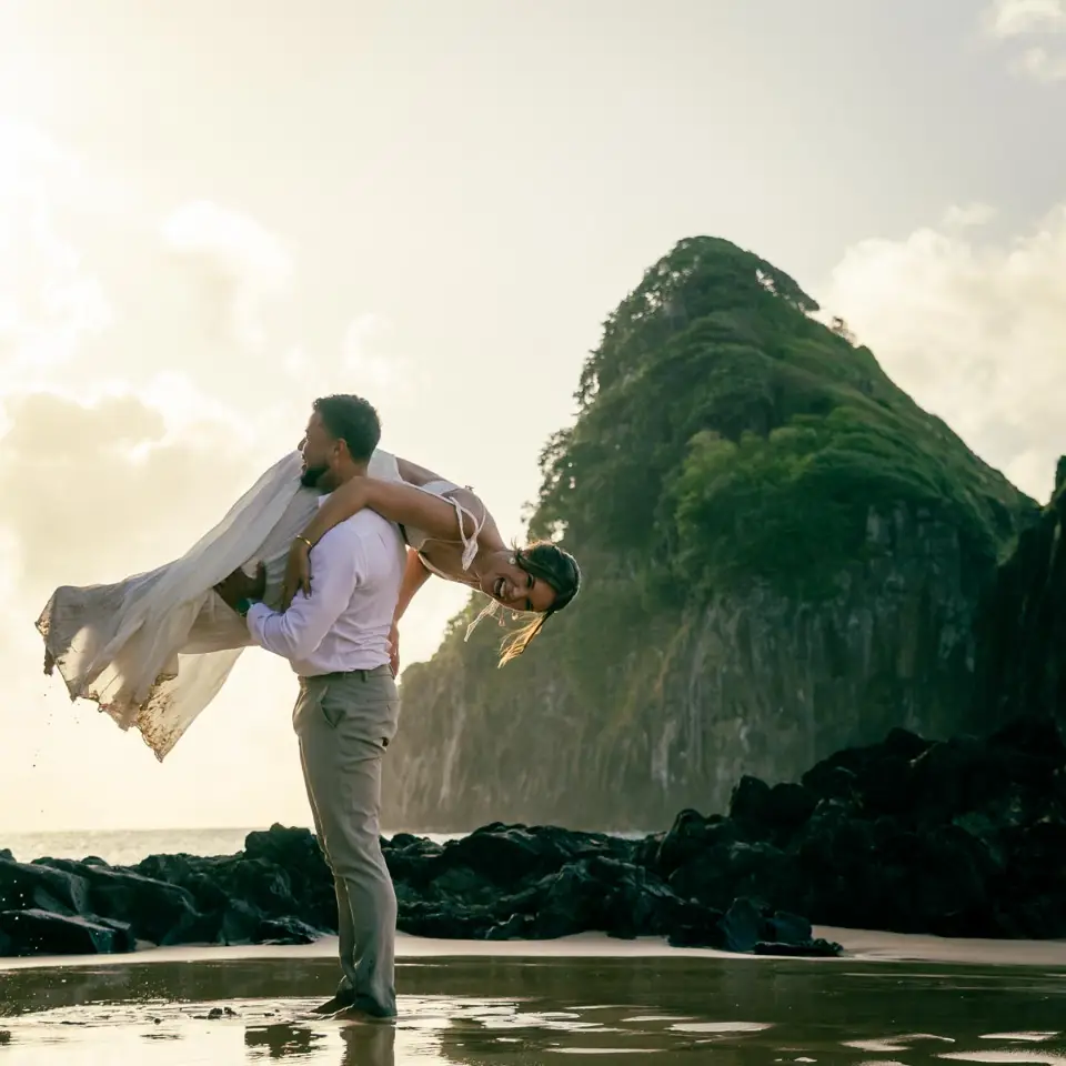 O Silvio é um personal trainer super conhecido por aqui, e a Adriele, nossa Miss Noronha, dispensa apresentações — sua beleza é radiante, mas é a sua doçura que realmente cativa. Participar desse capítulo da história deles foi, acima de tudo, uma honra pessoal.