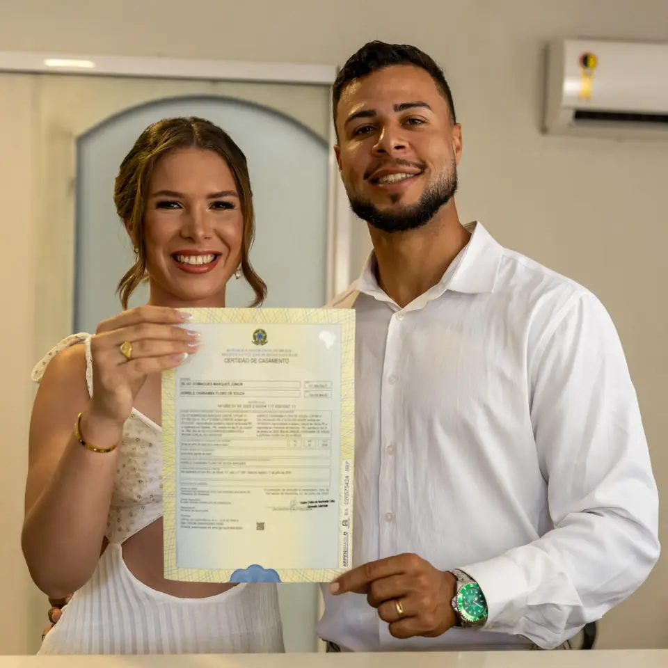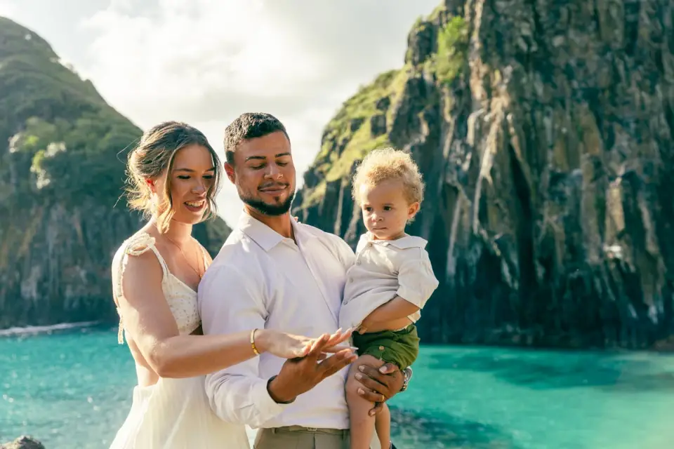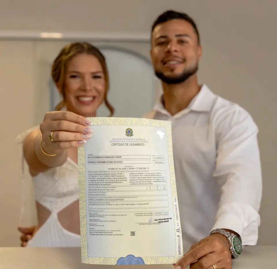 Tudo começou com a emoção genuína do casamento civil, realizado no cartório de Fernando de Noronha. Foi uma cerimônia íntima, onde o foco estava no que realmente importa: as promessas e os olhares de quem decidiu caminhar junto.