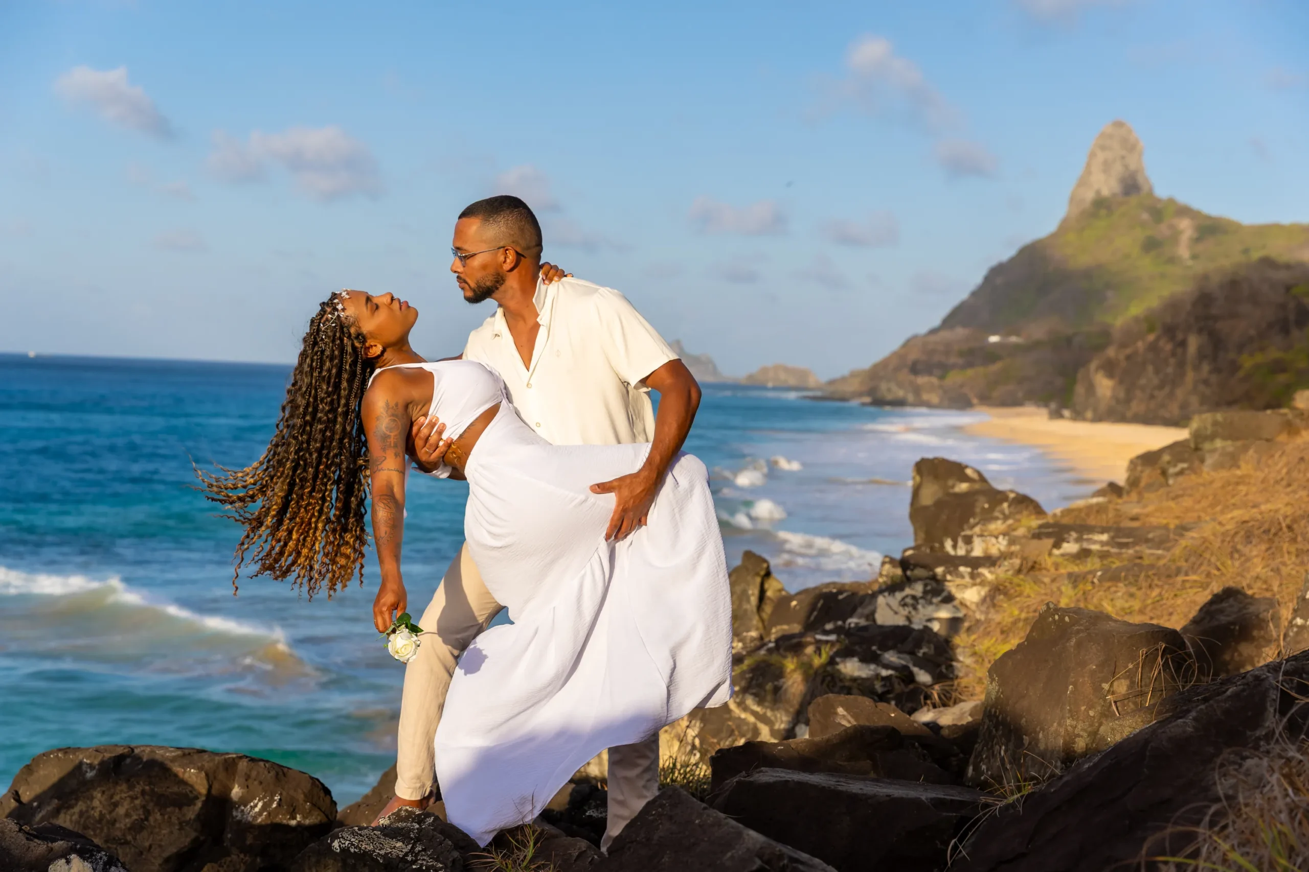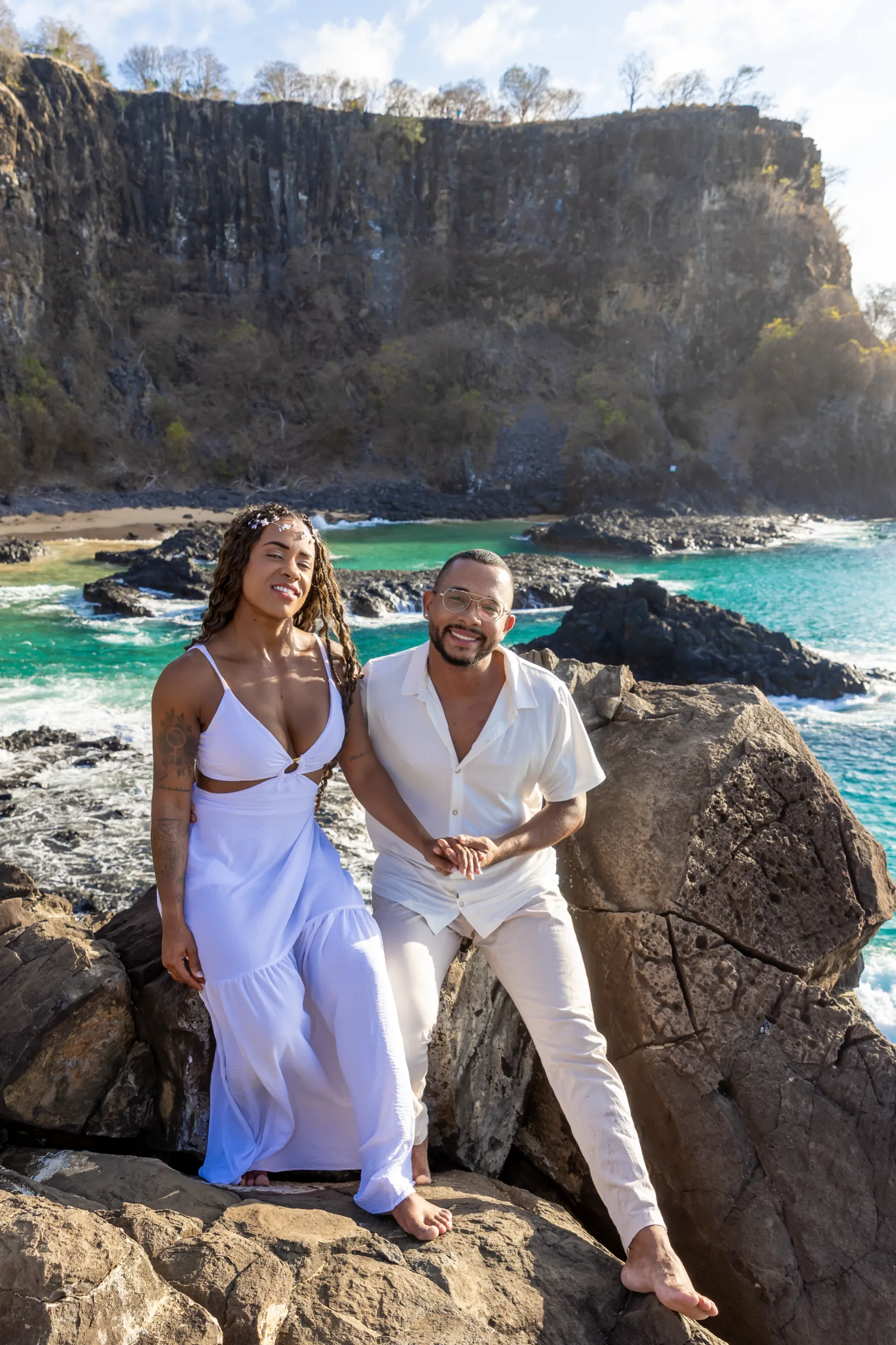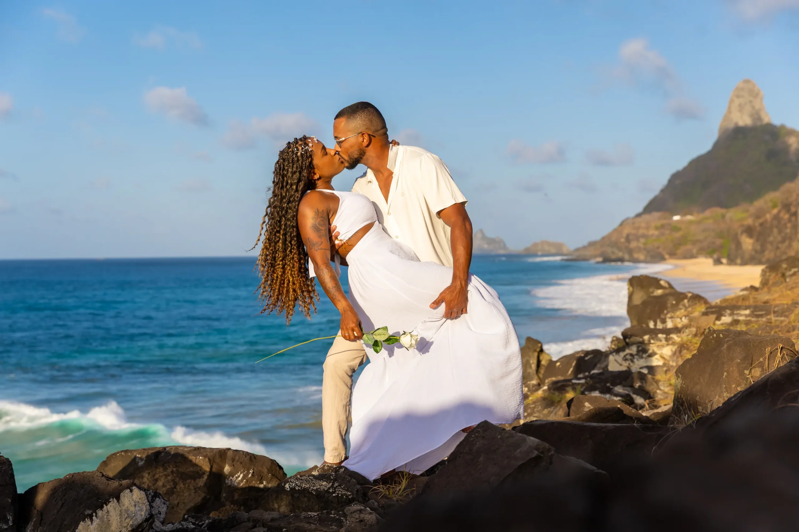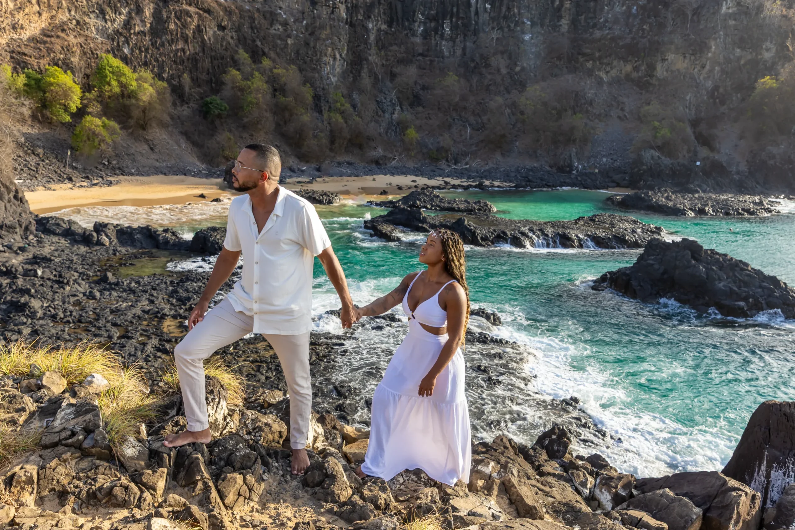 Como fotógrafa, meu papel foi ser uma observadora silenciosa, capturando a respiração suspensa, o brilho nos olhos e a entrega total do casal. Noronha tem esse poder: ela amplifica as emoções.