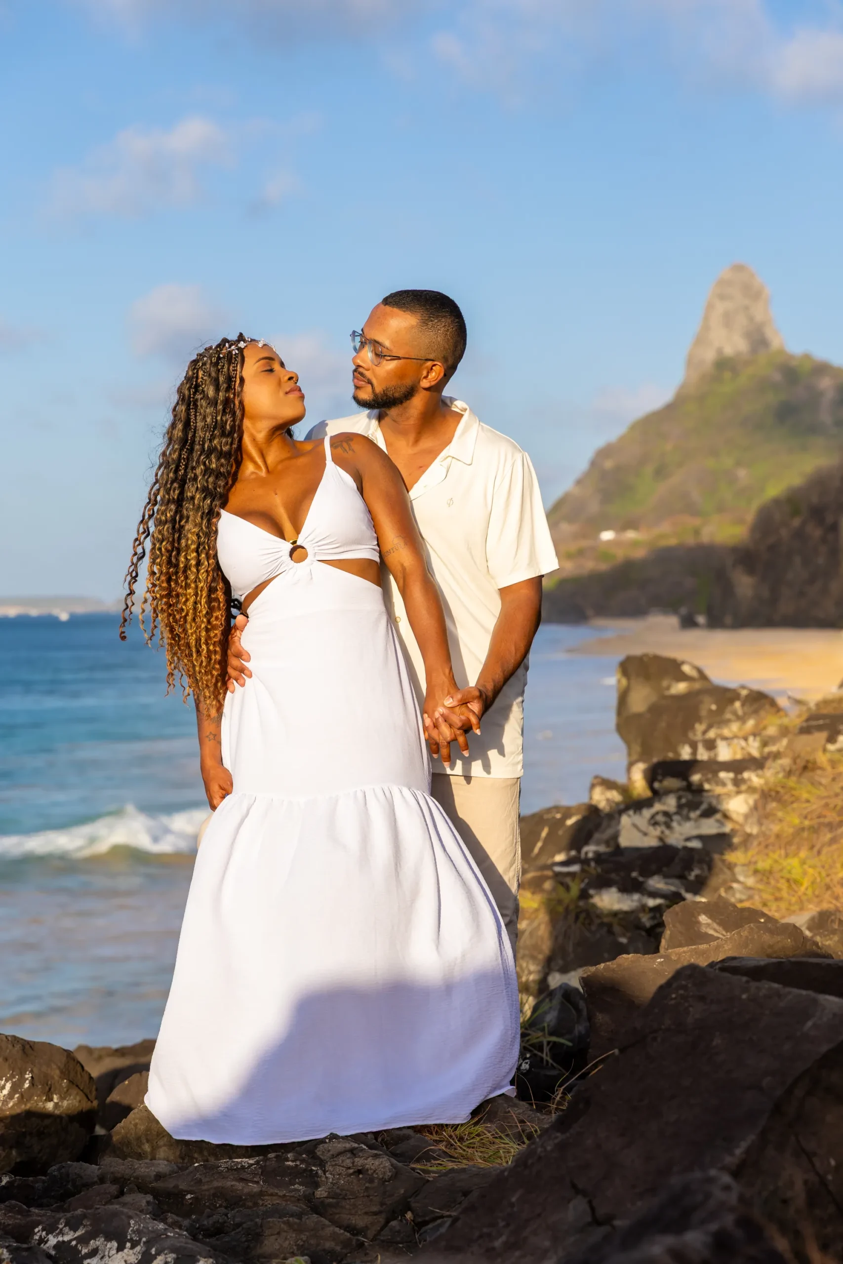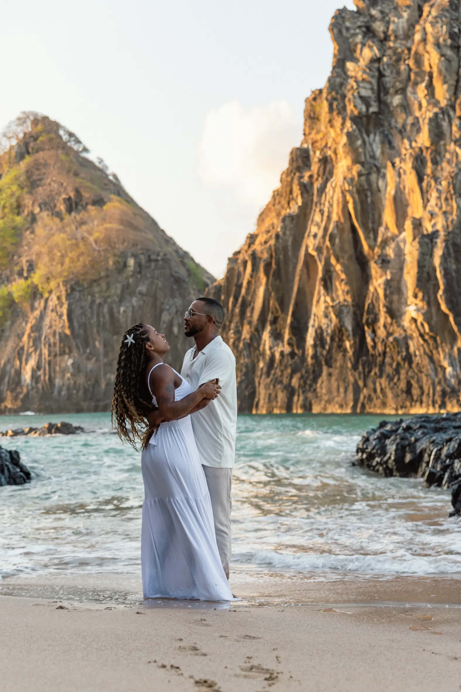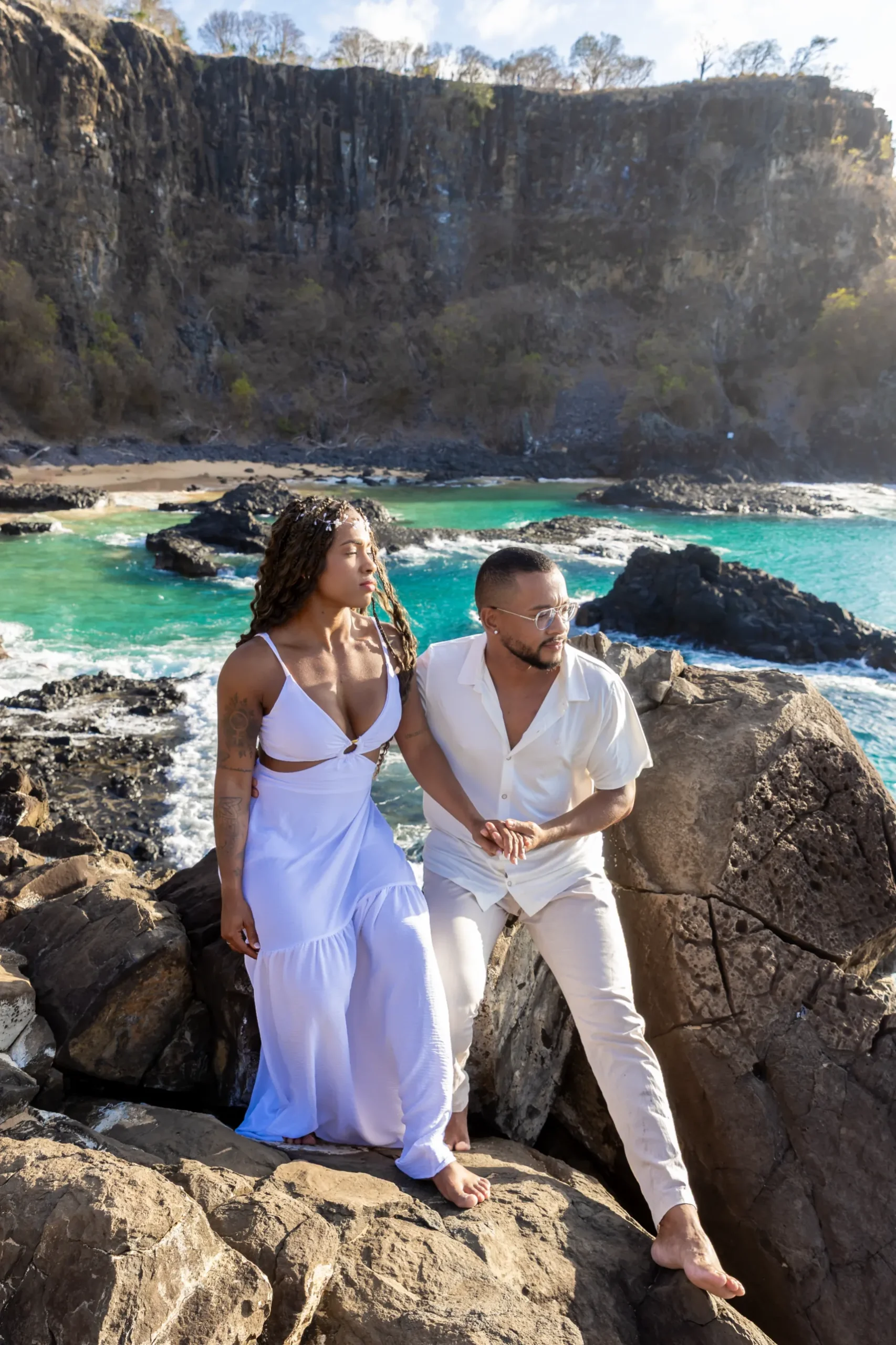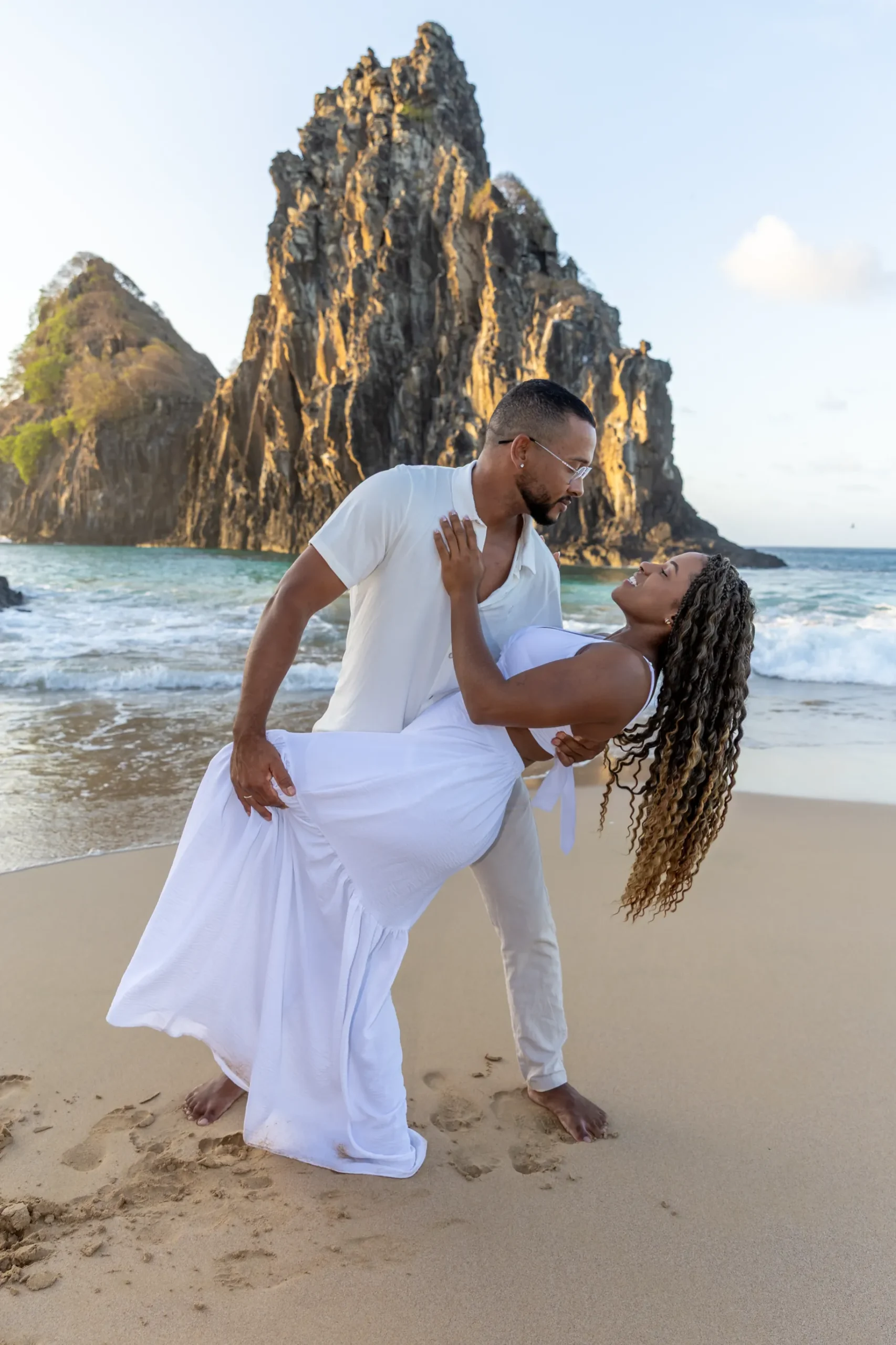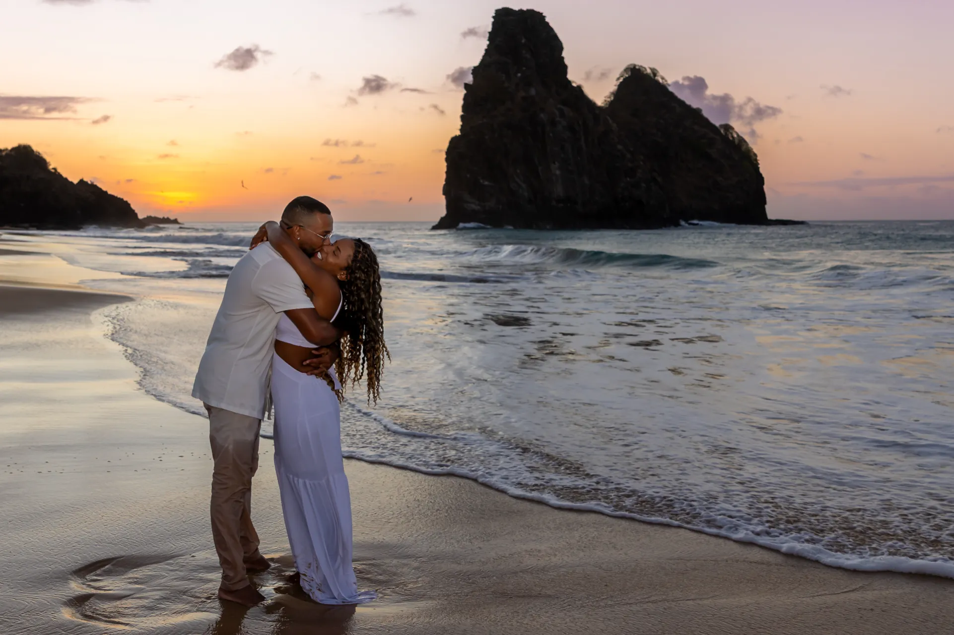 Como fotógrafa, meu papel foi ser uma observadora silenciosa, capturando a respiração suspensa, o brilho nos olhos e a entrega total do casal. Noronha tem esse poder: ela amplifica as emoções.