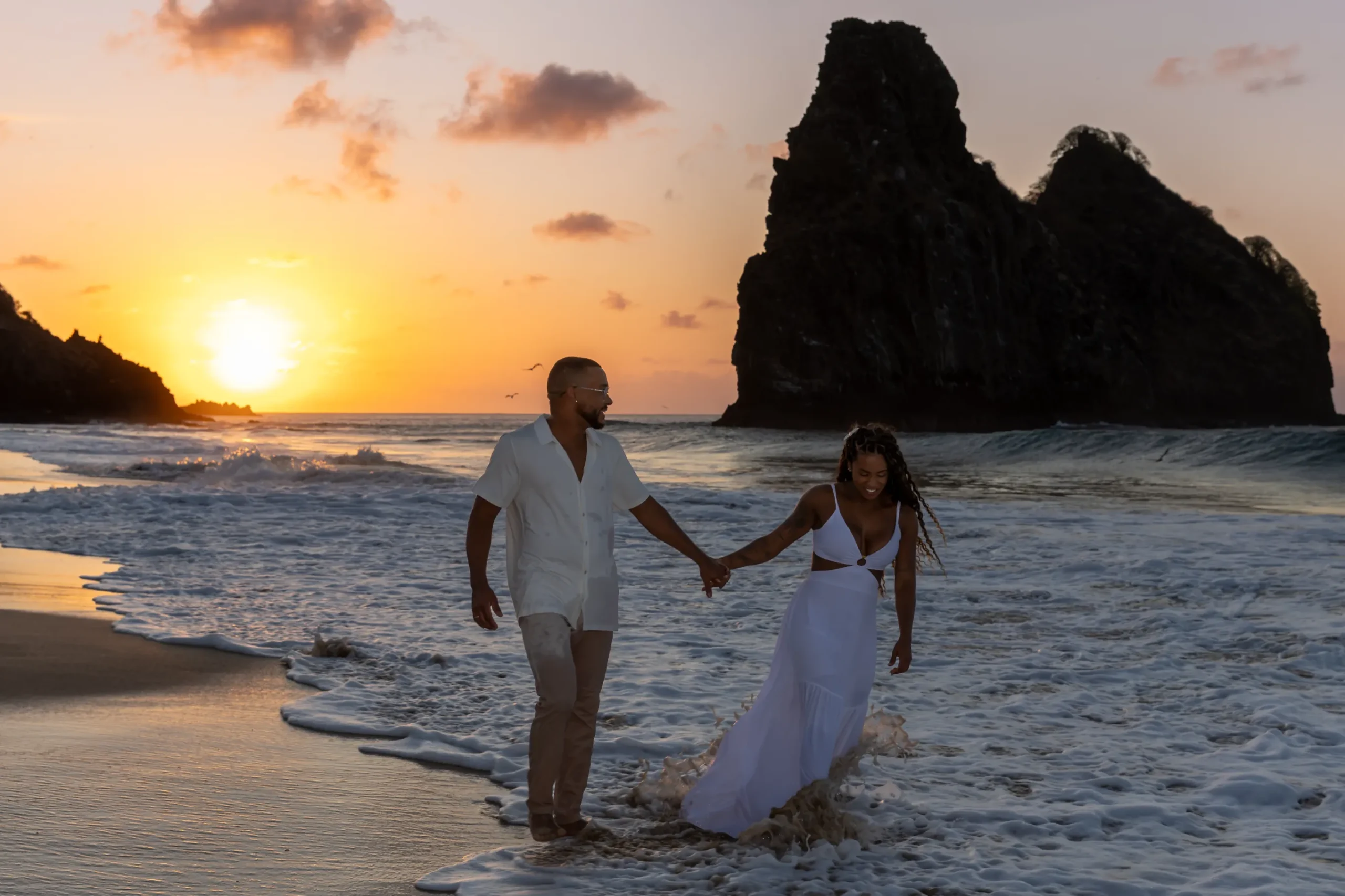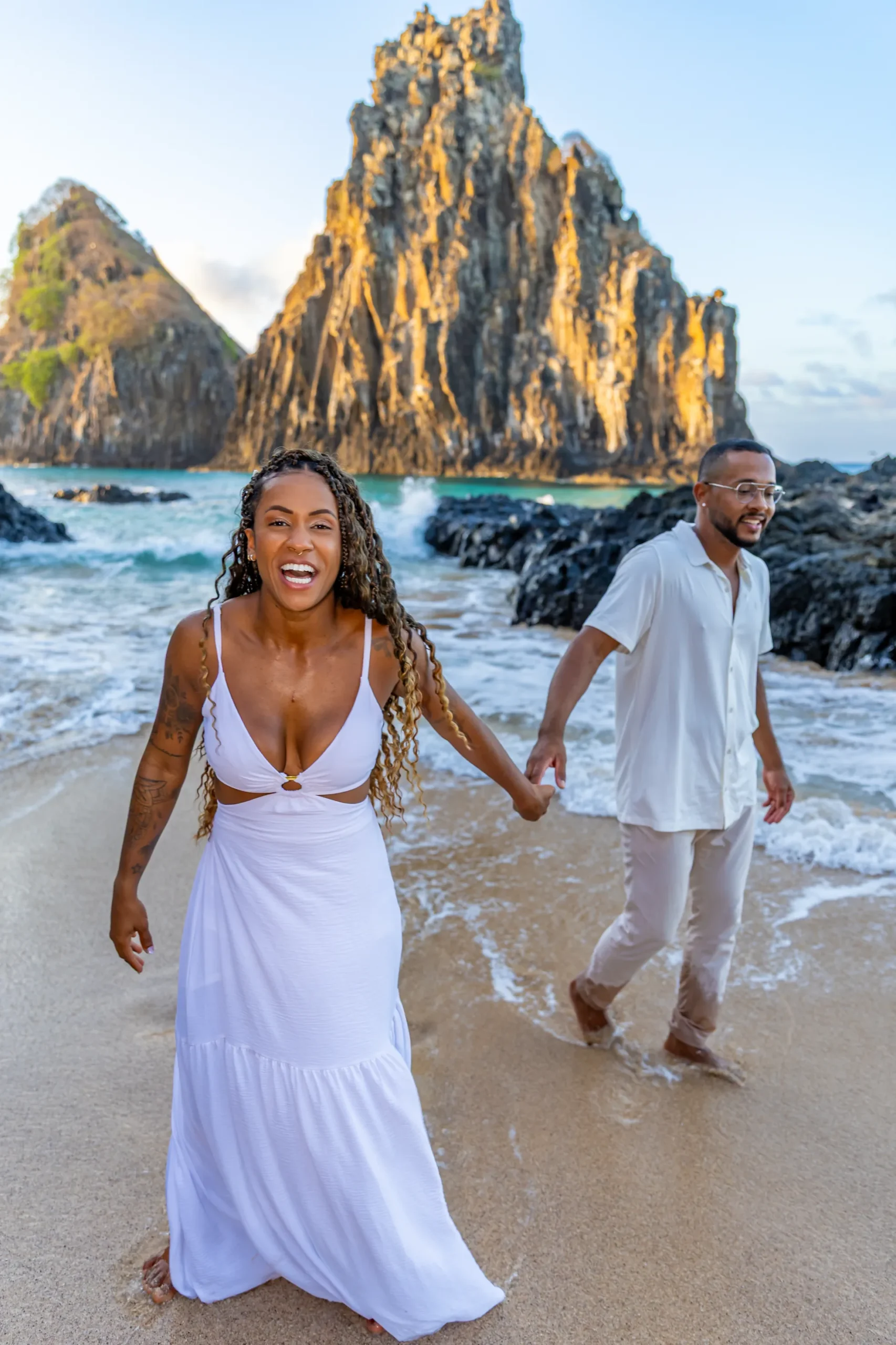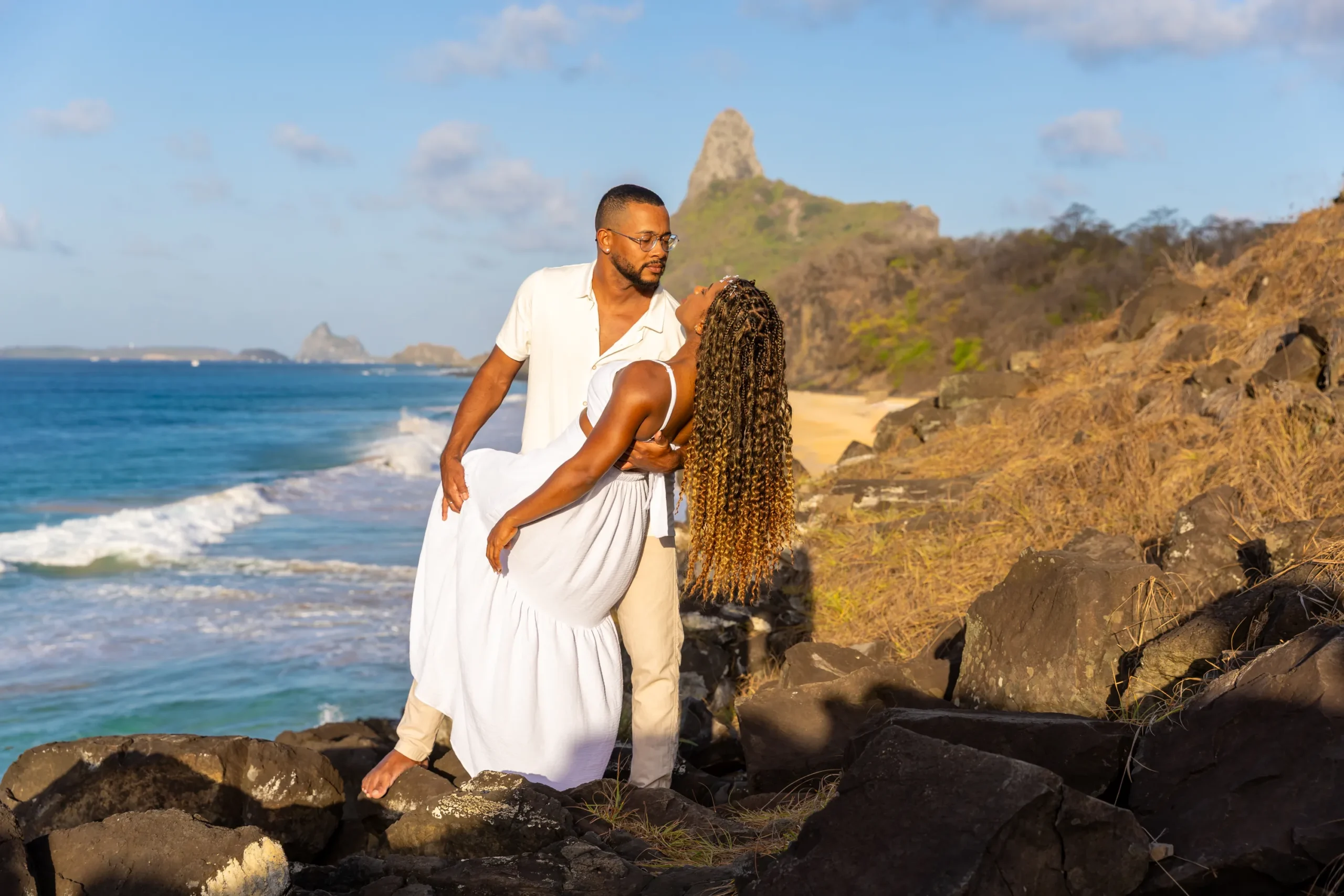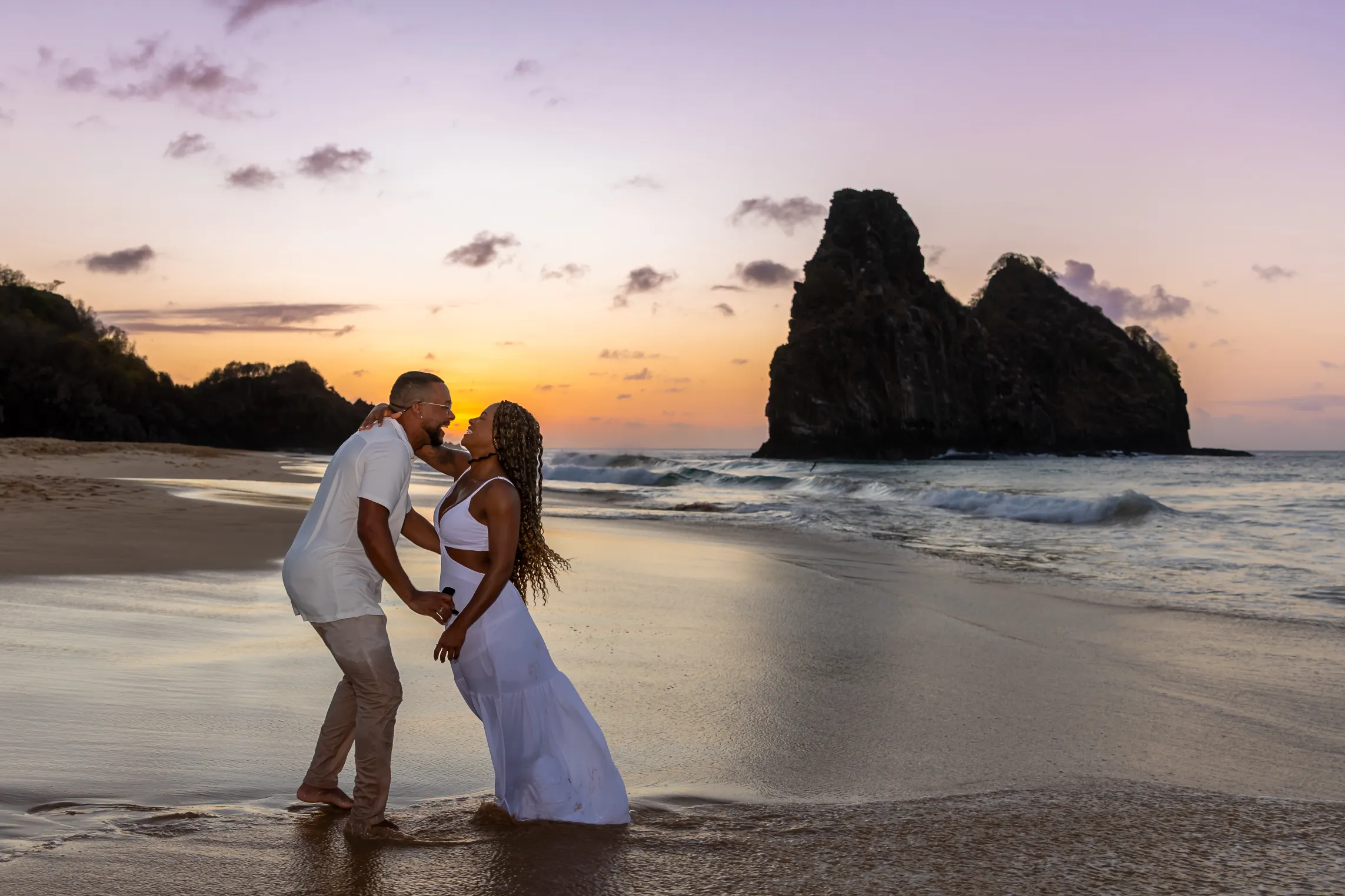 Como fotógrafa, meu papel foi ser uma observadora silenciosa, capturando a respiração suspensa, o brilho nos olhos e a entrega total do casal. Noronha tem esse poder: ela amplifica as emoções.