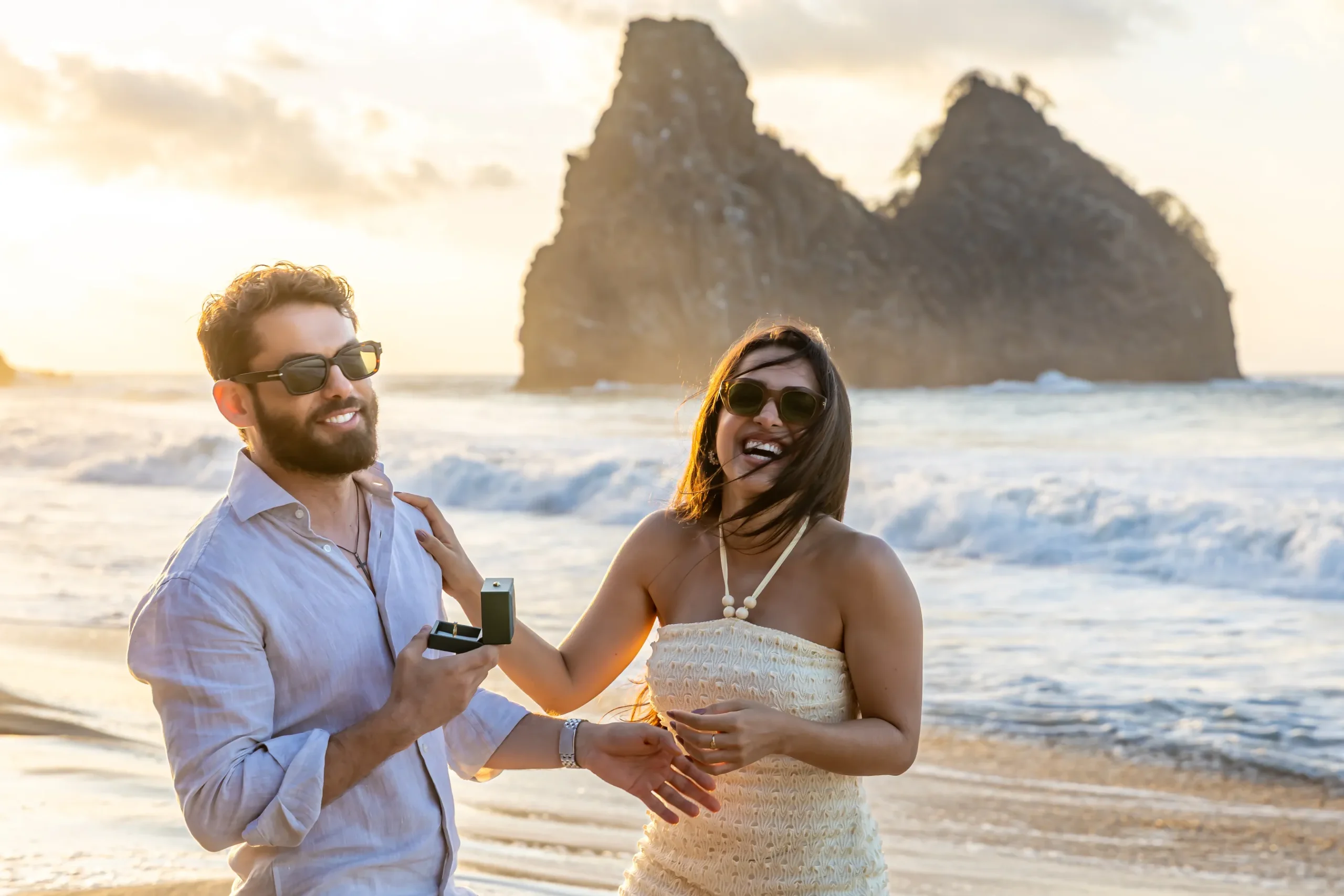 No Pedido de Casamento em Fernando de Noronha – Luana e Felipe, a natureza parecia conspirar a favor. O som das ondas e a brisa do arquipélago trouxeram uma trilha sonora natural que deixou o casal completamente à vontade.
