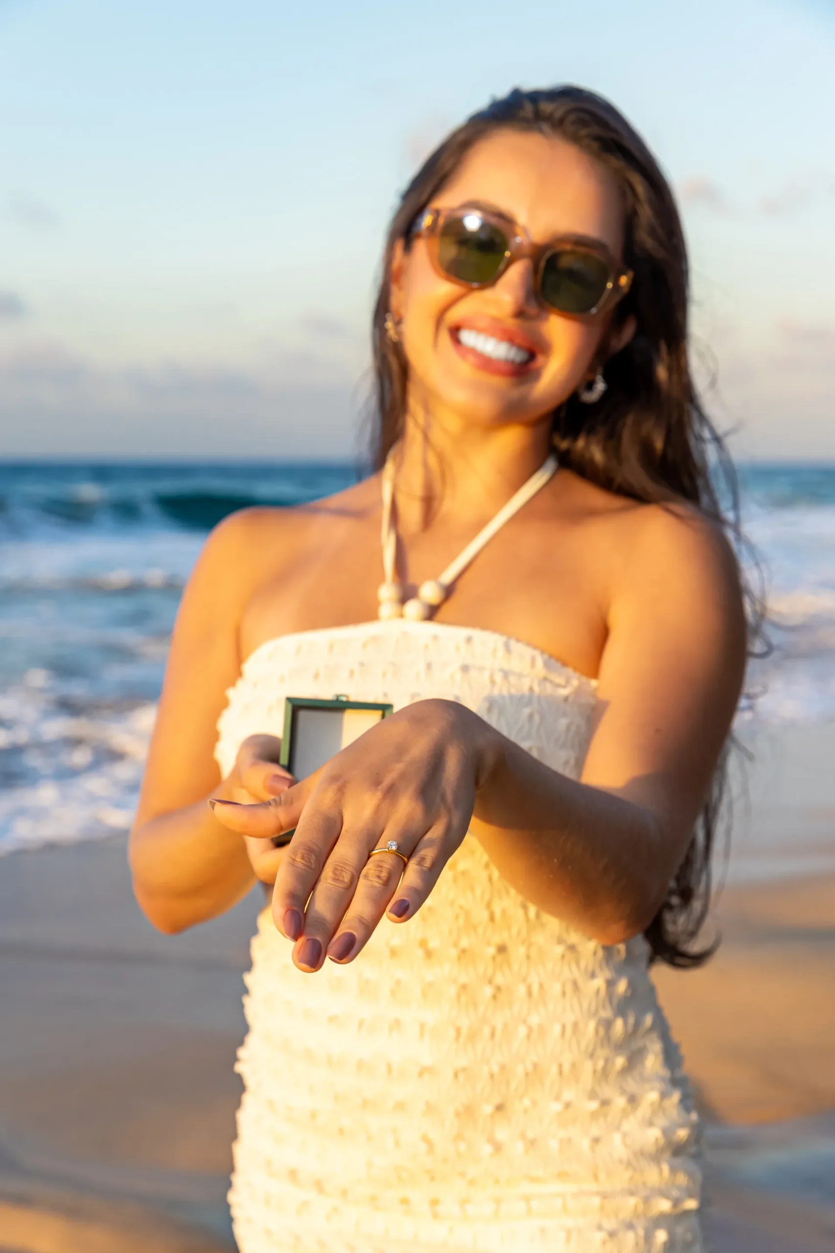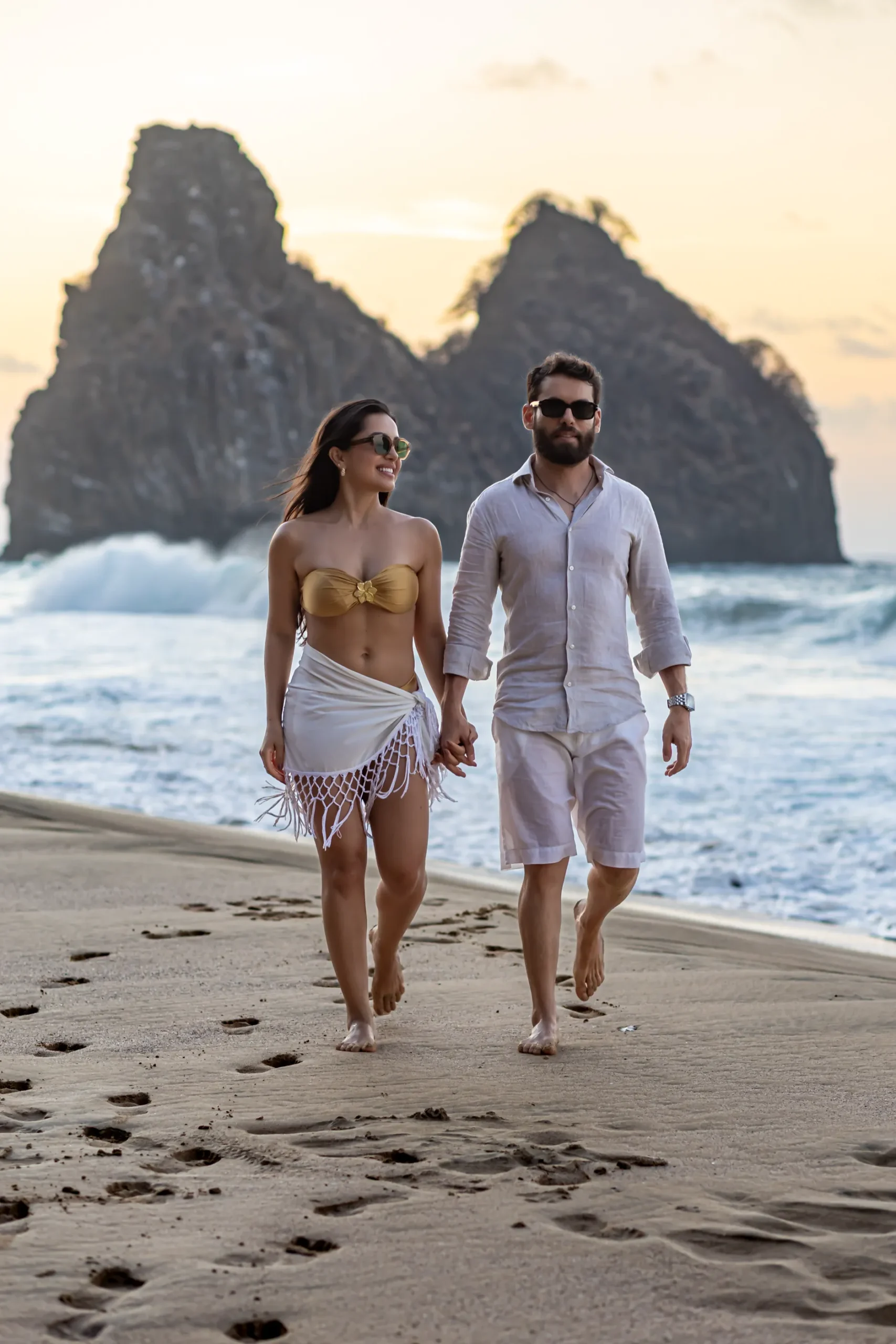 Caminhada pela Areia: Seguimos em uma caminhada leve, permitindo que o casal se soltasse e vivesse o momento com naturalidade.
