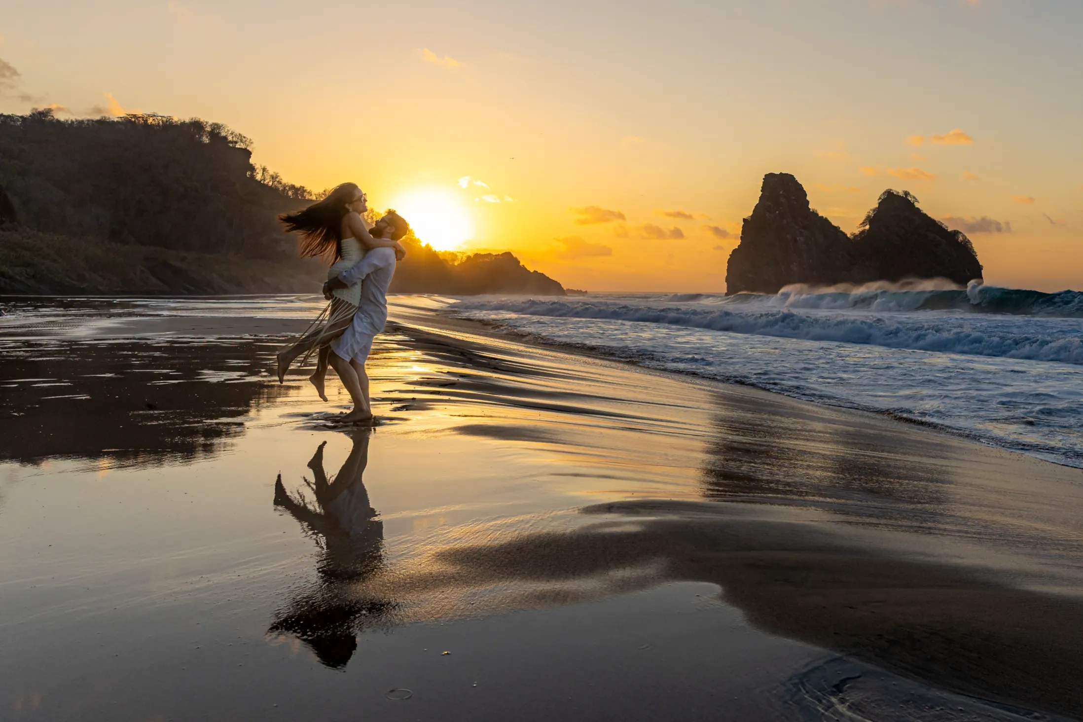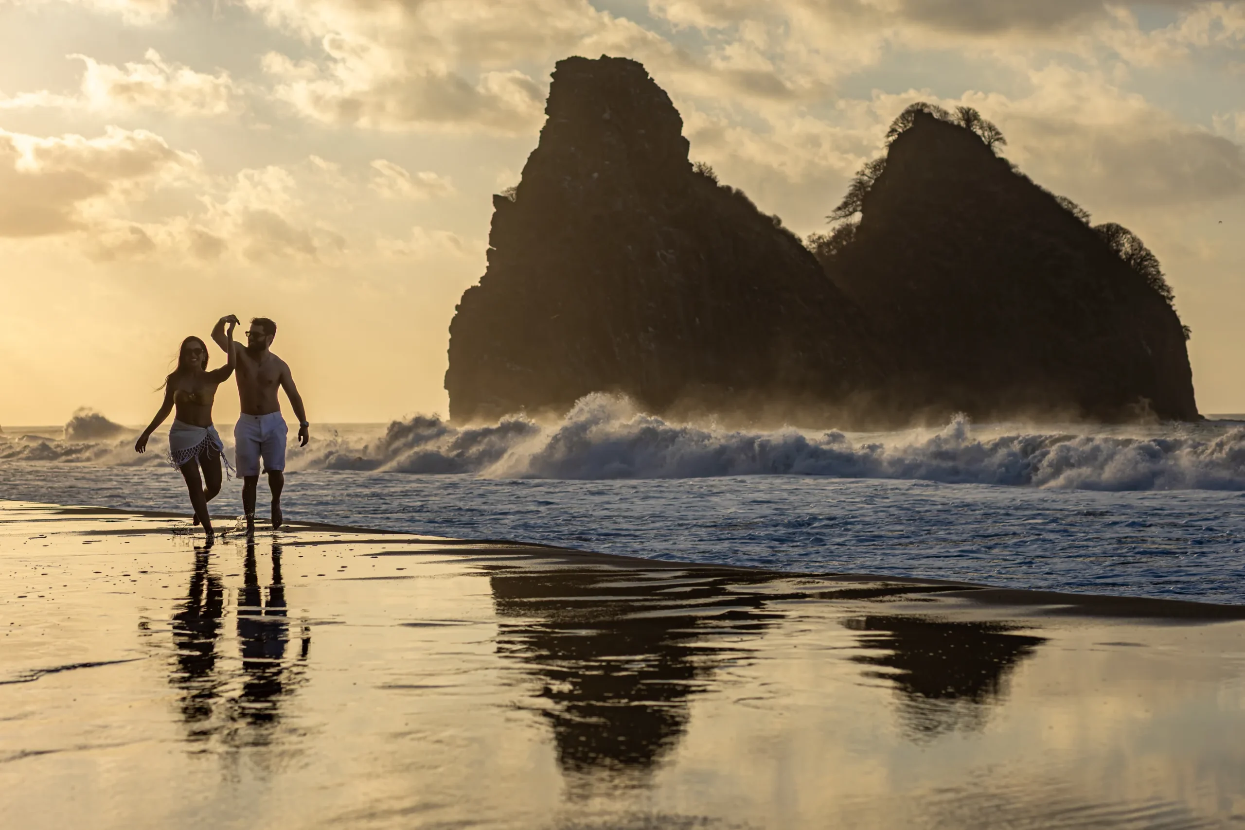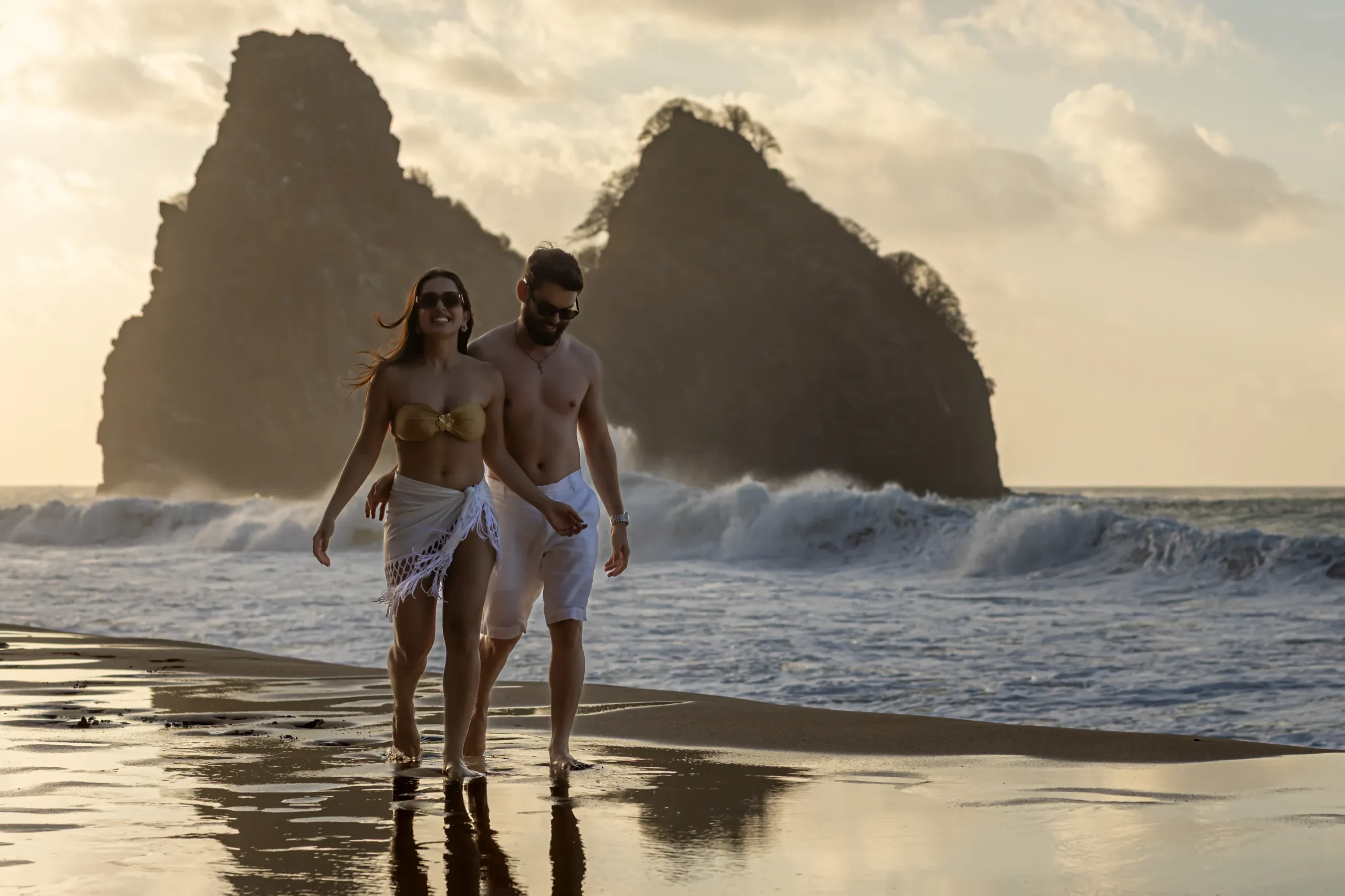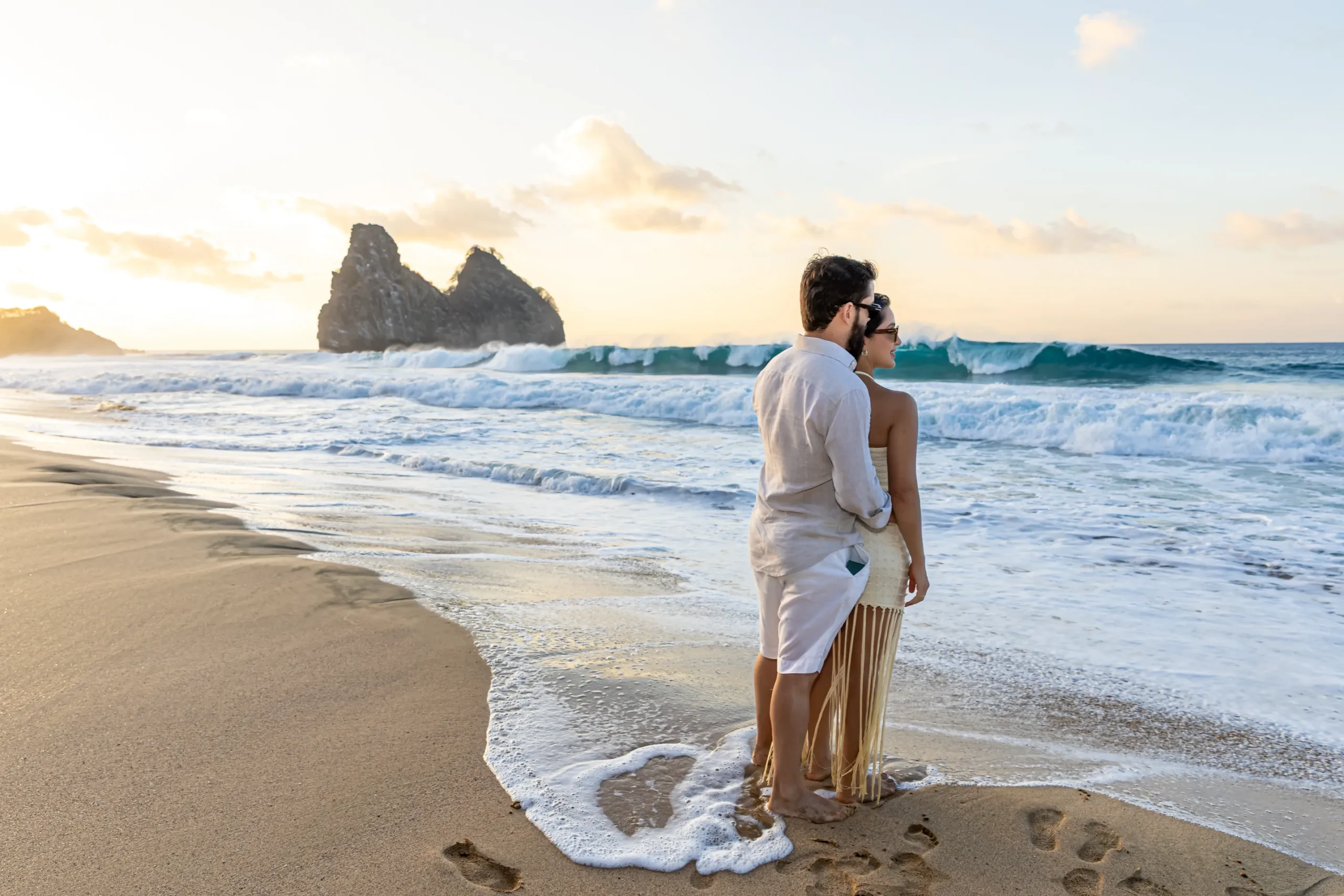 O Horário Ideal: O final de tarde (Golden Hour) em Noronha é mágico. A luz fica suave, dourada e extremamente romântica.