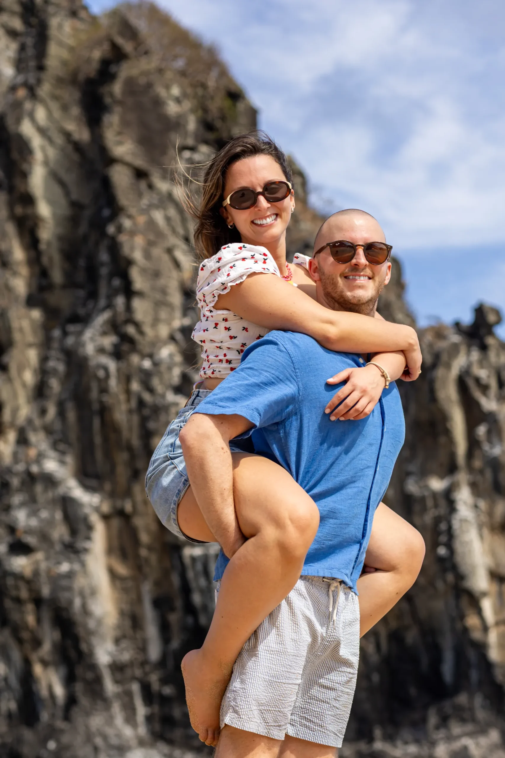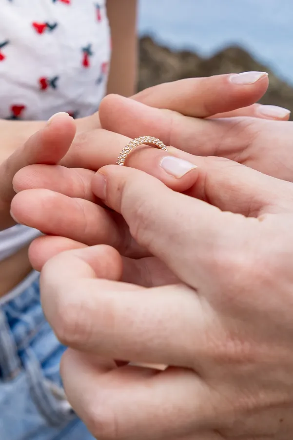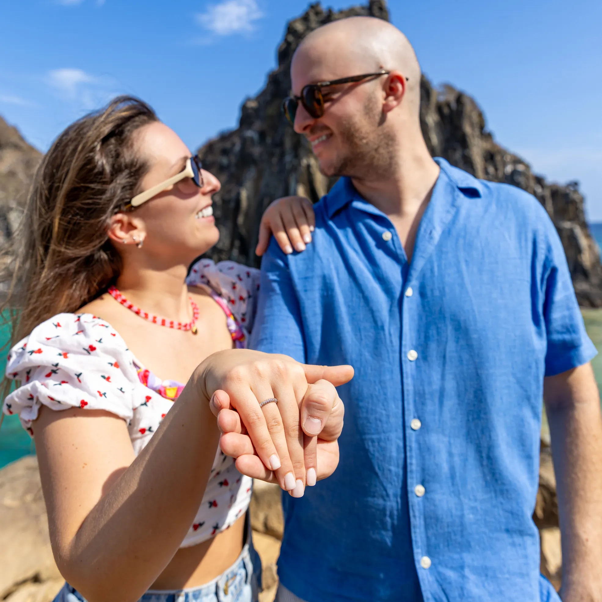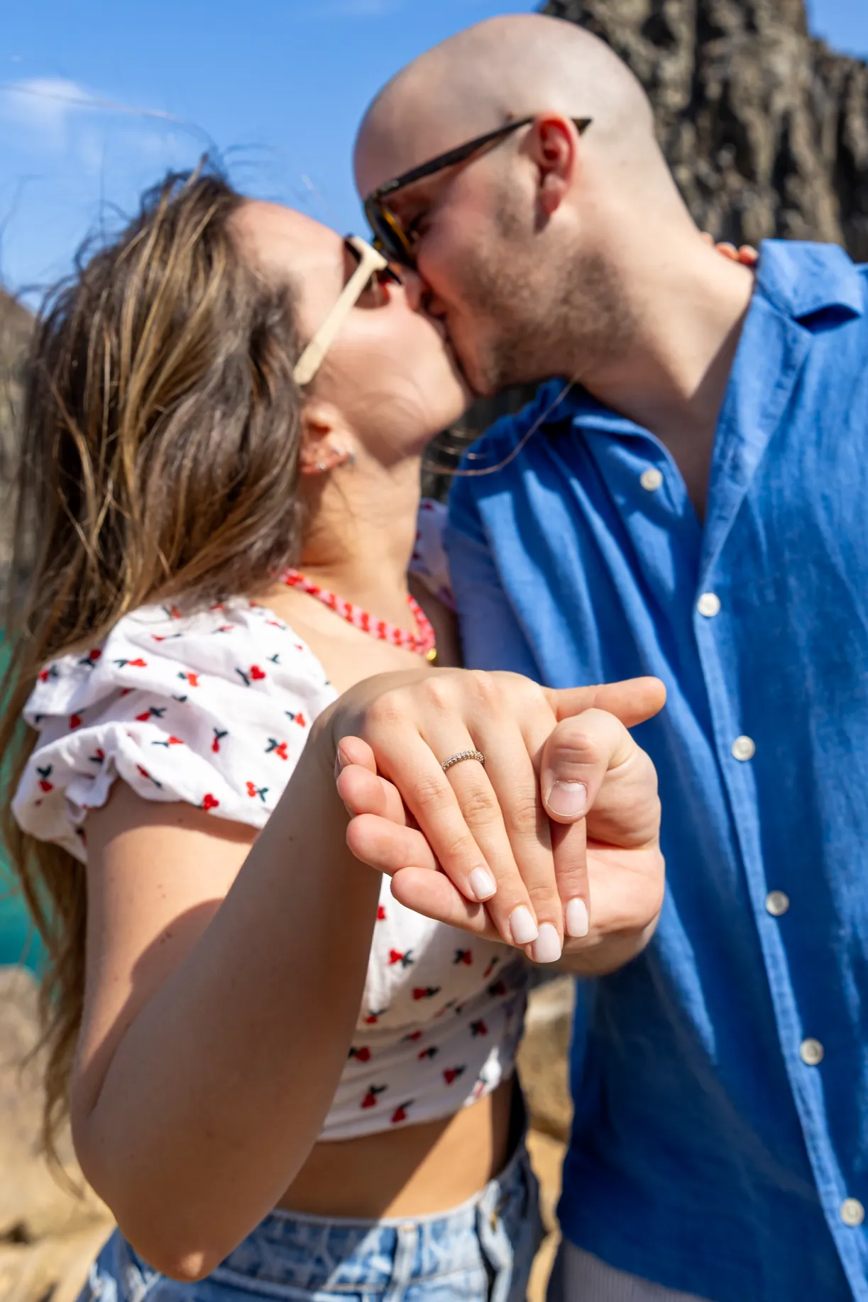 A jornada começou no emblemático Mirante dos Dois Irmãos. Com a vista panorâmica e o icónico Morro Dois Irmãos a emoldurar o horizonte, o João encontrou o momento perfeito para se ajoelhar e fazer a pergunta que mudaria o destino de ambos. A Filipa, visivelmente comovida, disse o “sim” num cenário onde a imensidão do oceano e a beleza selvagem da natureza serviram como as únicas testemunhas necessárias. Cada fotografia deste instante capta a pureza da entrega e a alegria radiante de um casal que escolheu o topo do mundo para selar o seu compromisso.