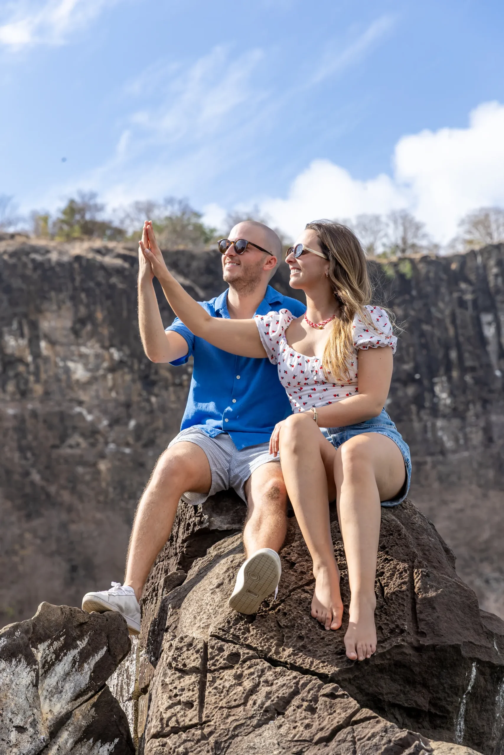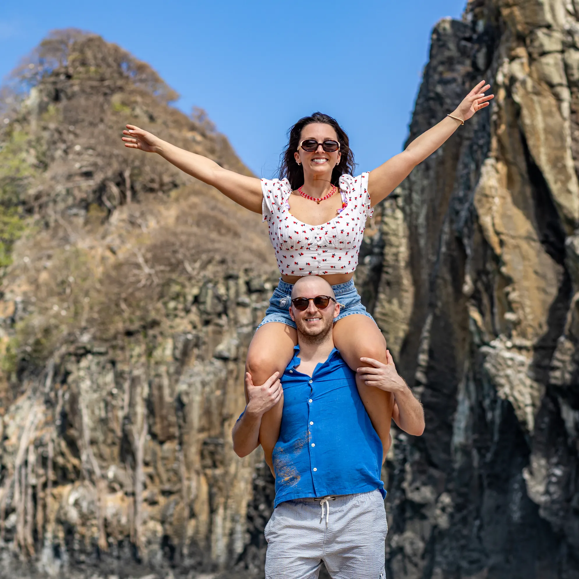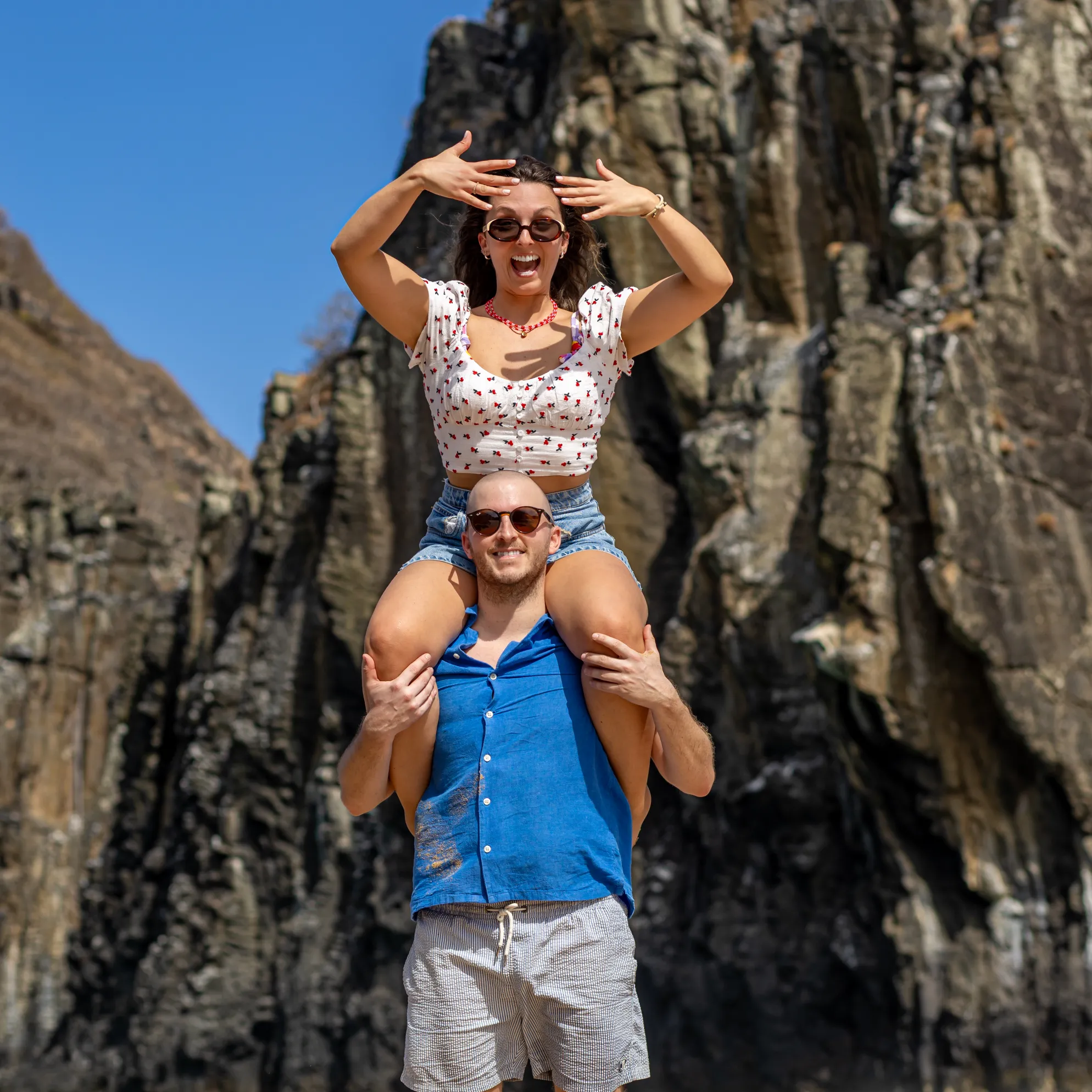A jornada começou no emblemático Mirante dos Dois Irmãos. Com a vista panorâmica e o icónico Morro Dois Irmãos a emoldurar o horizonte, o João encontrou o momento perfeito para se ajoelhar e fazer a pergunta que mudaria o destino de ambos. A Filipa, visivelmente comovida, disse o “sim” num cenário onde a imensidão do oceano e a beleza selvagem da natureza serviram como as únicas testemunhas necessárias. Cada fotografia deste instante capta a pureza da entrega e a alegria radiante de um casal que escolheu o topo do mundo para selar o seu compromisso.